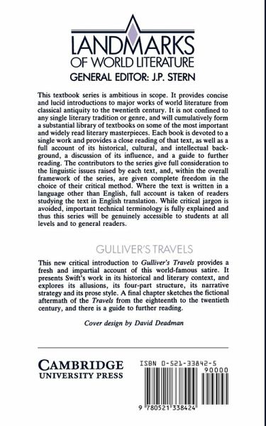 This new critical introduction to Gulliver's Travels aims at giving a fresh and impartial account of the world-famous satire. It characterises the significant historical and literary background to the work, and explores the text itself in the reading order intended by Swift. It gives proper attention to Swift's narrative and stylistic art, and to the experience of the reader, which have tended to be neglected in the course of prolonged academic arguments over interpretation. It also discusses the relation of the four parts of the Travels to one another. A final chapter sketches the fictional aftermath of the Travels from the eighteenth to the twentieth century.