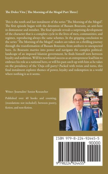 The Dolce Vita ( The Morning of the Mogul Part Three) This is the tenth and last instalment of the series "The Morning of the Mogul". The first episode began with the detention of Bassam Bourasin, an anti-here in demeanour and mindset. The final episode reveals a surprising development of the character that is a complete cycle in the lives of men, communities; and regimes, reproducing always the same schemes. In the gripping conclusion to the series "The Morning of the Mogul", readers are taken on a thrilling journey through the transformation of Bassam Bourasin, from antihero to unexpected hero. As Bourasin marries into power and navigates the complex political: landscape of an imposed Islamist government, he finds himself torn between loyalty and ambition. Will his newfound success as an entrepreneur lead him to embrace his role as a national hero, or will his past catch up with him as he takes on the presidency of the 'Ouja cell party? Packed with twists and turns, this final instalment explores themes of power, loyalty and redemption in a world where nothing is as it seems.