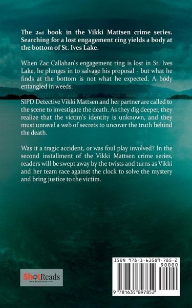 When Zac Callahan's engagement ring is lost in St. Ives Lake, he plunges in to salvage his proposal - but what he finds at the bottom is not what he expected. A body entangled in weeds. SIPD Detective Vikki Mattsen and her partner are called to the scene to investigate the death. As they dig deeper, they realize that the victim's identity is unknown, and they must unravel a web of secrets to uncover the truth behind the death. Was it a tragic accident, or was foul play involved? In the second installment of the Vikki Mattsen crime series, readers will be swept away by the twists and turns as Vikki and her team race against the clock to solve the mystery and bring justice to the victim.