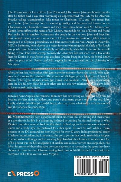 John Ferrara was the love child of John Peters and Julia Ferrara. John was born 6 months after his father died a day after swimming an unprecedented 400 IM, for his Alderson Broadus college championship. Julia moves to Charleston, WV, and John meets Ben and Denise. John develops into a swimming prodigy and becomes well known in the Charleston area. His mother marries and they move into a house with Mr. Milton, near Denise. John suffers at the hands of Mr. Milton, meanwhile his love of Denise and friend Ben make his life passable. Fortunately, the people in the city love John and help him earn enough money to enter swim meets. On a vacation to Baltimore, John's talent is recognized as Olympic possibilities, and John moves with his Aunt Angela to Pikesville, MD. In Baltimore, John blooms to a major force in swimming with the help of his lunch group, who push him both academically and athletically, while his Denise and he are still falling in love. John's first attempt to make the Olympics falls just short, and a few weeks later his Denise is lost after an auto accident. Despite being in a funk, his friend Emily takes the place of his Denise, and John regains his form to swim for the University of Michigan. After another lost relationship, with Janice another swimmer leaves the school, John again goes in to a monk like existence. The women of Michigan plot a blind date of Francine Shuler, "John's type, athletic, smart, fast witted, and beautiful". After a slow relationship start the two fall very much for each other, and it is this new relationship that allows John to focus on swimming again. Between Aunt Angela and Francine, John now has two strong women that help him to become the best student, athlete, and person that many people love. In the end, John finally achieves his Olympic medal, but at the cost of any relationship with his mother and the Charleston connection.