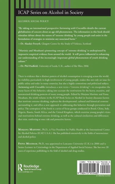 Editors. Contributors. Martinic Measham A Case for the Term "Extreme Drinking." Measham A History of Intoxication: Changing Attitudes to Drunkenness and Excess in the United Kingdom. Nahoum-Grappe Beyond Boundaries: Youth and the Dream of the Extreme. Choquet Case Study: Drinking Among Young People in France. Leigh Lee What Motivates Extreme Drinking? Measham Case Study: Drinking Among Young People in the United Kingdom. Focus Group Results. Gorgulho Da Ros Brazil. Newman China. Tempesta Italy. Odejide Omigbodun Ajuwon Makanjuola Bamgboye Oshiname Nigeria. Koshkina Russia. Makan South Africa. March United Kingdom (Scotland). Leverton Evans Stakeholders and Their Roles. Martinic Alexander Extreme Drinking Young People and Feasible Policy. Pérez-Fragero Case Study: Botellón in Spain. Gorgulho Tamendarova Tackling Extreme Drinking in Young People: Feasible Interventions. Kilmer Larimer Case Study: United States: Drinking Among Sorority and Fraternity Students. Martinic Measham Afterword. Annex 1: Procedures for Focus Groups on Extreme Drinking. Annex 2: Guiding Questions for Focus Groups. Index.