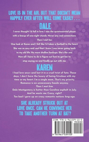 Dale I never thought I'd fall in love. I was the quintessential player with a lineup of one-night stands. Never any real connections. Then I met her. One look at Karen and I felt like I'd taken a fastball to the heart. She was so sexy and real that I knew I was never going back to my old life. No more shallow hookups. She's the one. Now all I have to do is figure out how to get her to stop saying no and finally go out with me. Karen I had love once-and lost it in a cruel twist of fate. These days, I don't have the luxury of being frivolous with my time or my heart. I'm a single mom. That's my priority. Romance is an unnecessary hassle anyway. Then I met him. Dale Montgomery is hotter than Carolina asphalt in July. And he wants me. Crazy, right? Too bad I gave up on crazy romantic notions long ago.