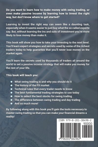 Do you want to learn how to make money with swing trading, or even make passive income by learning how to invest the right way, but don't know where to get started? Learning to invest the right way can seem like a daunting task, especially when it seems easier to just buy what the so called experts say. But, without learning the ins and outs of investment you're more likely to lose money than make it. This book will show you how to take your investing to the next level. You'll learn expert strategies and secrets used by some of the richest traders today to help guarantee that you'll never lose money on the market again. You'll learn the secrets used by thousands of traders all around the world to set a passive income strategy that will make you money for the rest of your life. This book will teach you: - What swing trading is and why you should do it - The history of the FX market - Technical rules that every trader needs to know - The best fundamental trading strategies to use today - How to select the best stocks for swing trading - The difference between swing trading and day trading and so much more! By following along with this book you'll gain the tools necessary to master swing trading so that you can make your financial dreams a reality. If you are ready to learn how to swing trade so that you can start living the kind of life you've only dreamed about then you need to get this book today!