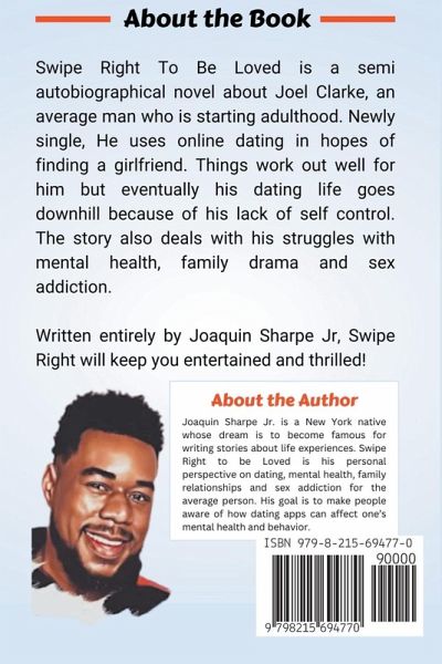Swipe Right To Be Loved is a semi-autobiographical novel about Joel Clarke, an average man starting adulthood. Newly single, He uses online dating in hopes of finding a girlfriend. Things work out well for him, but eventually, his life goes downhill due to his lack of self-control. The story also deals with his struggles with mental health, family relationships, and sex addiction.