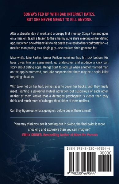 Sonya's fed up with bad internet dates. But she never meant to kill anyone. After a stressful day at work and a creepy first meetup, Sonya Romano goes on a mission: teach a lesson to the smarmy guys she's meeting on her dating app. But when one of them falls to his death as a result of her confrontation--a married man posing as a single guy--she realizes she's gone too far. Meanwhile, Jake Parker, former Pulitzer nominee, has hit rock bottom. His boss gives him an assignment: go under cover and produce a click bait story about dating apps. Things start to look up when another married man on the app is murdered, and Jake suspects that there may be a serial killer targeting cheaters. With Jake hot on her trail, Sonya races to cover her tracks, until they finally meet. Fighting a powerful mutual attraction but suspicious of each other, neither of them know that a deranged psychopath is closer than they think, and much more of a danger than either of them realizes. Can they figure out what's going on, before one of them is next? "You may think you see it coming--but in Swipe, the final twist is more shocking and explosive than you can imagine." - Emily Shiner, Bestselling Author of Meet the Parents "Swipe is a chilling, taut and twisty psychological thriller that will have you frantically turning pages until its stunning end. Riveting from the very first page, Swipe is a roller coaster ride with complex, intriguing characters who will draw you in and not let you go. Clear your schedule because once you start reading, you won't be able to stop." - Lisa Regan, USA Today Bestselling Author of the Josie Quinn Series "One word gripping...IThis was a wonderful 5 star read! Love, love, loved it!" -NetGalley "I like thrillers a lot but this one was exceptional. This is one l'd buy to have a physical copy of. This is one that I read in the span of an evening because I couldn't stop." - NetGalley "Twisty, thrilling and fast paced. Everything I love about a thriller." - NetGalley "Fans of Freida McFadden will absolutely devour this book. It has that same addictive, page-turning energy." - NetGalley "I highly recommend Swipe by R.G. Belsky and Bonnie Traymore. It's an engaging thriller that blends psychological depth with an absorbing mystery. Fans of Gone Girl and You will enjoy the elements of obsession, deception, and the consequences of hidden identities." Sheri Hoyte, for ReaderViews "Wow! When they call this book a psychological thriller, they really got that right! The storytelling here was so colorful and descriptive that I almost forgot this was fiction. Five stars - must read!" COZY HOME DELIGHT BOOK REVIEWS "An exciting and genuine page-turner! As the story unfolded, the authors kept me on the edge of my seat with plot twists and turns. But honestly, the breathtaking opening of the book floored me, and I was riveted to my reading chair for the rest of the evening as the drama played out." GUATEMALA PAULA LOVES TO READ "Wow, what a great book! So suspenseful! I read this book in one day. It's been a long time since I've done that. It was brilliant. The writing, the two main characters, the suspense, everything, brilliant!" WALL-TO-WALL BOOKS "SWIPE was an amazing read that hooks you from start to finish. So many shocking moments keep you on the edge of your seat. If you're looking for a powerful and explosive novel with a chilling series of events, SWIPE is a perfect pick." WHY NOT? BECAUSE I SAID SO BOOK REVIEWS "The suspense building is perfectly paced making the story last from the first page until the last...the storyline is brilliantly crafty and gets the mind working overtime!" LEANNEBOOKSTAGRAM