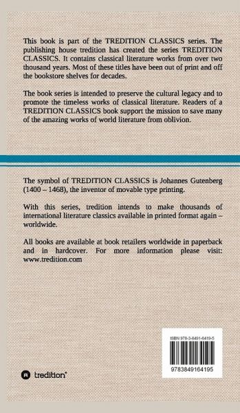 This book (hardcover) is part of the TREDITION CLASSICS. It contains classical literature works from over two thousand years. Most of these titles have been out of print and off the bookstore shelves for decades. The book series is intended to preserve the cultural legacy and to promote the timeless works of classical literature. Readers of a TREDITION CLASSICS book support the mission to save many of the amazing works of world literature from oblivion. With this series, tredition intends to make thousands of international literature classics available in printed format again worldwide.