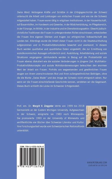 "Swiss Maid: Verborgene Kräfte und Schätze in der Erfolgsgeschichte der Schweiz korrigiert treffend das Auslassen von Frauen in den historischen Narrativen der Schweiz. Es gibt zwar eine erfreuliche Anzahl von Recherchen zur Geschichte von Frauen in der Schweiz, seitdem sich Historiker - meistens Historikerinnen - mit Frauenarbeit, Staatsbürgerschaft und Nationalität, politischen Rechten, Familienleben und Ausbildung auseinandersetzen. Aber die Geschichtsschreibung in der Schweiz wurde durch ihre Publikationen kaum verändert. Was als die Grundlage des Erfolgs in der Schweiz gilt - die politische Stabilität, die hohe Qualität der Produkte, die Innovationen und der finanzielle Erfolg - wird immer noch so beschrieben, als hätten die Frauen nichts dazu beigetragen, bzw. als hätten die Frauen gar nicht existiert. Margrit Zinggeler stützt sich konsequent auf historische Statistiken und Porträts von historischen und zeitgenössischen Frauen um dies zu ändern und uns die Augen für den zugrunde liegenden Erfolg der "Marke Schweiz" zu öffnen. Der Schreibstil und der Inhalt des Buches sind auf ein breites Publikum ausgerichtet."-Prof. em. Dr. Regina Wecker, Frauen- und Gendergeschichte, Universität Basel
