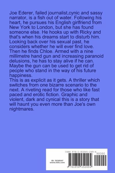 Haunted by sinister and brutal nightmares, Joe Ederer, an American in London, recalls his voracious sexual past. Passing between fashionable London's most glamorous places and the villains on the outskirts, reality starts to mirror his dreams. As a result, Joe is thrust into a twilight existence where only the fastest thinking will survive. A dark and graphic, yet tasteful, erotic thriller, which follows Joe's thoughts and deeds in excruciating detail. An enjoyable bagatelle that twists and turns as 'jive-talking' Joe fights for survival in the dark recesses of London's seamy underbelly.