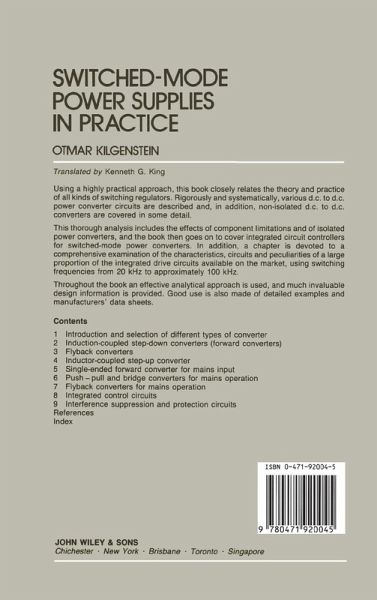 A handbook on the theory and application of switched-mode power supplies. Presents all important established techniques and includes many detailed examples, using manufacturer's actual data sheets. Covers design and use of DC-to-DC power converter circuits, non-isolated DC-to-DC converters, IC controllers for switched-mode power converters, and isolated power converters. Also discusses the radio frequency interface and addresses electromagnetic compatibility problems. A special chapter examines characteristics, circuits, and peculiarities of many of the integrated drive circuits currently available.