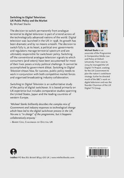 Sometime in the next four years, in a move that is bound to anger consumers and endanger the careers of politicians, the United Kingdom plans to turn off its analog, terrestrial television and switch fully to digital TV. Switching to Digital Television argues that, in order for the initiative to succeed, public policymakers need to carefully consider competitive market forces and collaborate with the broadcasting industry. This authoritative study of the government policy behind the switchover also draws on the United Kingdom's experience as a basis for comparative analysis of the United States, Japan, and western European nations, all of which will face similar questions in coming years. "The book provides an interesting and 'different' history of Digital Television, and if you want to know why and how the decisions were made, it deserves a place on your bookshelf."- Jim Slater, Image Technology Magazine "Michael Starks brilliantly describes the complex mix of Government and industry responses to technological change which have led to the digital switchover process in the UK."-Barry Cox, Chairman of Digital UK