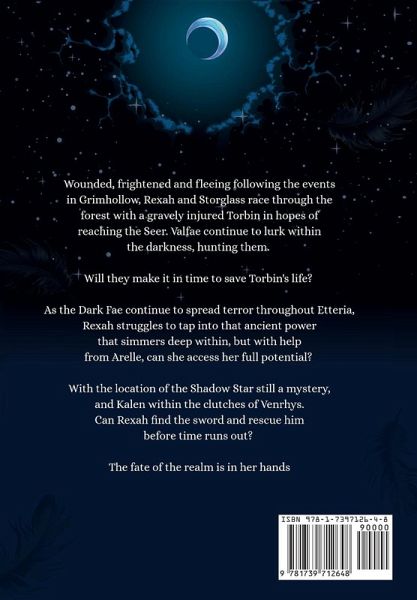Wounded, frightened and fleeing following the events in Grimhollow, Rexah and Storglass race through the forest with a gravely injured Torbin in hopes of reaching the Seer. Valfae continue to lurk within the darkness, hunting them. Will they make it in time to save Torbin's life? As the Dark Fae continue to spread terror throughout the Etteria, Rexah struggles to tap into that ancient power that simmers deep within, but with help from Arelle, can she access her full potential? With the location of the Shadow Star still a mystery, and Kalen within the clutches of Venrhys, can Rexah find the sword and rescue him before time runs out? The fate of the realm is in her hands.