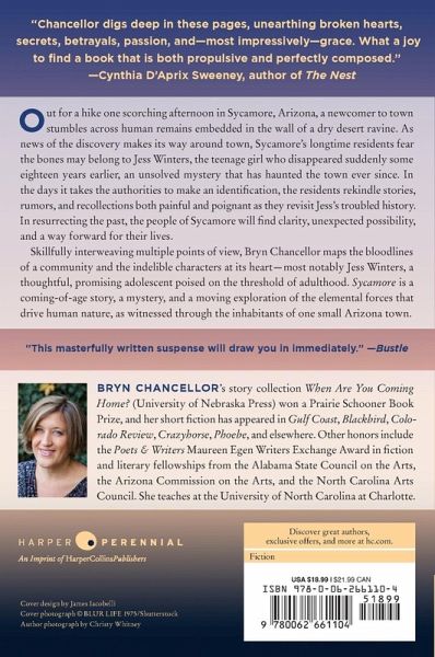 Out for a hike one scorching afternoon in Sycamore, Arizona, a newcomer to town stumbles across what appear to be human remains embedded in the wall of a dry desert ravine. As news of the discovery makes its way around town, Sycamore's longtime residents fear the bones may belong to Jess Winters, the teenage girl who disappeared suddenly some eighteen years earlier, an unsolved mystery that has soaked into the porous rock of the town and haunted it ever since. In the days it takes the authorities to make an identification, the residents rekindle stories, rumors, and recollections both painful and poignant as they revisit Jess's troubled history. In resurrecting the past, the people of Sycamore will find clarity, unexpected possibility, and a way forward for their lives.