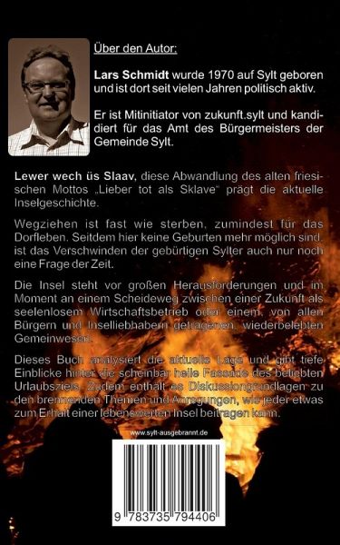 Lewer ofstap üs Slav, diese Abwandlung des alten friesischen Mottos "Lieber tot als Sklave" prägt die aktuelle Inselgeschichte.Wegziehen ist fast wie sterben, zumindest für das Dorfleben. Seitdem hier keine Geburten mehr möglich sind, ist das Verschwinden der gebürtigen Sylter auch nur noch eine Frage der Zeit.Die Insel steht vor großen Herausforderungen und im Moment an einem Scheideweg zwischen einer Zukunft als seelenlosem Wirtschaftsbetrieb oder einem, von allen Bürgern und Inselliebhabern getragenen, wiederbelebten Gemeinwesen.Dieses Buch analysiert die aktuelle Lage und gibt tiefe Einblicke hinter die scheinbar heile Fassade des beliebten Urlaubsziels. Zudem enthält es Diskussiongrundlagen zu den brennenden Themen und Anregungen, wie jeder etwas zum Erhalt einer lebenswerten Insel beitragen kann.