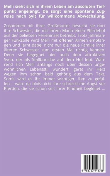 Melli sieht sich in ihrem Leben am absoluten Tiefpunkt angelangt. Da sorgt eine spontane Zugreise nach Sylt für willkommene Abwechslung. Zusammen mit ihrer Großmutter besucht sie dort ihre Schwester, die mit ihrem Mann einen Pferdehof auf der beliebten Ferieninsel betreibt. Trotz jahrelanger Funkstille wird Melli mit offenen Armen empfangen und lernt dabei nicht nur die neue Familie ihrer älteren Schwester zum ersten Mal richtig kennen. Denn sie begegnet hier auch dem attraktiven Sven, der als Stallbursche auf dem Hof lebt. Während sich Melli anfangs noch über dessen ungewöhnlichen Lebensstil wundert, gerät ihr Herz wegen ihm schon bald gehörig aus dem Takt. Somit wird es ihr immer wichtiger, ihm zu gefallen - wäre da bloß nicht ihre schreckliche Angst vor Pferden, die sie schon seit ihrer Kindheit begleitet ...