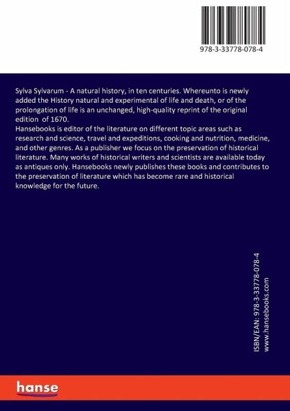 Sylva Sylvarum - A natural history, in ten centuries. Whereunto is newly added the History natural and experimental of life and death, or of the prolongation of life is an unchanged, high-quality reprint of the original edition of 1670.
