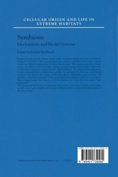 Symbiosis is the fourth volume in the series Cellular Origin and Life in Extreme Habitats (COLE). Fifty experts, from over a dozen countries, review their current studies on different approaches to these phenomena. The chapters present various aspects of symbiosis from gene transfer, morphological features, and biodiversity to individual organisms sharing mutual cellular habitats. The origin of the eukaryotic phase is discussed with emphasis on cyanelles, H syntrophy, N2 fixation, and S-based symbiosis (as well as the origin of mitochondrion, chloroplast, and nucleus). All members of the three domains of life are presented for sharing symbiotic associations. This volume brings the concept of living together as `One plus One (plus One) equals One.'