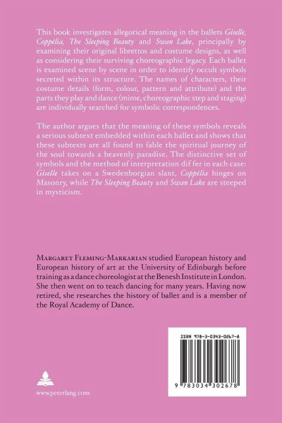 The author argues that the meaning of these symbols reveals a serious subtext embedded within each ballet and shows that these subtexts are all found to fable the spiritual journey of the soul towards a heavenly paradise. The distinctive set of symbols and the method of interpretation differ in each case: Giselle takes on a Swedenborgian slant, Coppélia hinges on Masonry, while The Sleeping Beauty and Swan Lake are steepedin mysticism.