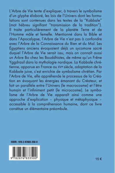"Symbolisme de l'Arbre" de vie tente d'expliquer, à travers le symbolisme d'un glyphe élaboré, les lois de l'Univers dont les formulations sont contenues dans les textes de la "Kabbale" (mot hébreu signi¿ant "transmission de la tradition"). Il traite particulièrement de la planète Terre et de l'Homme mâle et femelle. Mentionné dans la Bible et dans l'Apocalypse, l'Arbre de Vie n'est pas à confondre avec l'Arbre de la Connaissance du Bien et du Mal. Les Égyptiens anciens évoquaient déjà un sycomore sacré duquel l'Arbre de Vie serait issu, mais on connaît aussi un Arbre Bo chez les Bouddhistes, de même qu'un Frêne Yggdrasil dans la mythologie nordique. La Kabbale chrétienne, apparue en France au XVe siècle, adaptation de la Kabbale juive, s'est enrichie de symbolisme chrétien. Par l'Arbre de Vie, elle appréhende le processus de la Création en évoquant les énergies émanant du Créateur, et fait un parallèle entre l'Univers (le macrocosme) et l'être humain et l'in¿niment petit (le microcosme). Le symbolisme de l'Arbre de Vie apparaît ainsi comme une approche d'explication - physique et métaphysique -accessible à la compréhension humaine, dont ce livre constitue un élémentaire préambule. À PROPOS DE L'AUTEUR À l'heure où pléthore d'informations peuvent être glanées sur internet, comment faire la différence entre du contenu pertinent ou les divagations de certains internautes ? C'est pourquoi le livre papier reste une valeur sûre pour la documentation et l'érudition. Bernard Rathaux l'a bien compris. Cet Essonnien riche d'une expérience d'éditeur fait la synthèse des éléments indispensables qu'il faut connaître sur des périodes historiques données.
