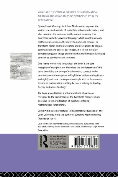 Symbols and Meanings in School Mathematics explores the various uses and aspects of symbols in school mathematics and also examines the notion of mathematical meaning. It is concerned with the power of language which enables us to do mathematics, giving us the ability to name and rename, to transform names and to use names and descriptions to conjure, communicate and control our images. It is in the interplay between language, image and object that mathematics is created and can be communicated to others. The book also addresses a set of questions of particular relevance to the last decade of the twentieth century, which arise due to the proliferation of machines offering mathematical functioning.
