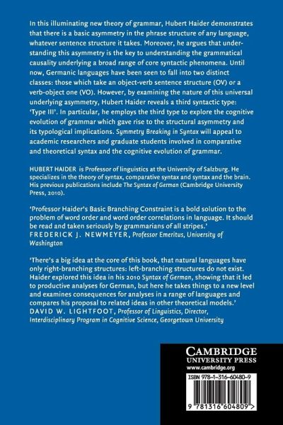 Hubert Haider is Professor of Linguistics at the University of Salzburg. He specializes in the theory of syntax, comparative syntax and syntax and the brain. His previous publications include The Syntax of German (Cambridge, 2010).