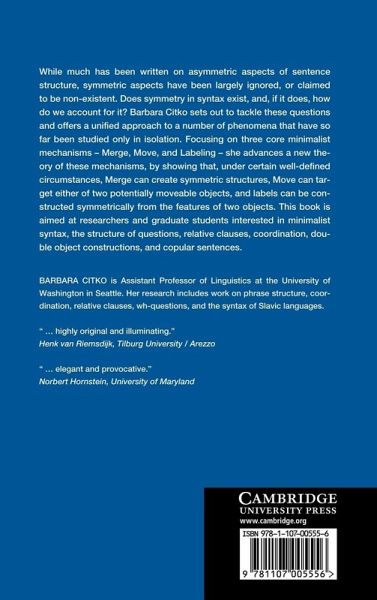 Examines symmetric aspects of three core mechanisms in minimalist syntax: merge, move and labeling.