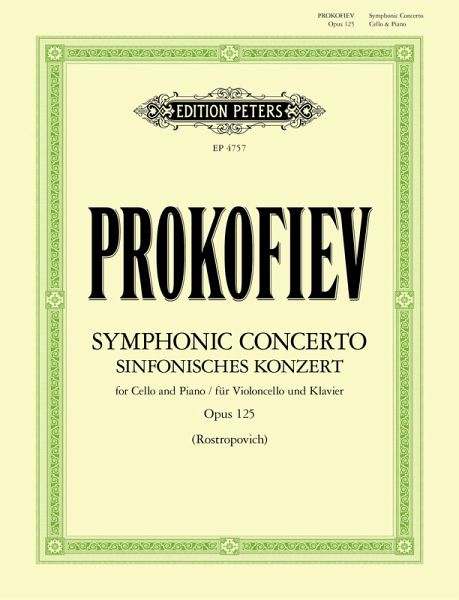 Sergei Prokofiev's Symphonic Concerto for Cello and Piano Op. 125 stands as a monumental achievement in the 20th-century cello repertoire. Composed between 1950 and 1952 in close collaboration with volume editor Mstislav Rostropovich, the Symphonic Concerto is a comprehensive reworking of Prokofiev's earlier Cello Concerto Op. 58. The composer expanded the traditional concerto form by combining it with symphonic elements to striking effect. This reprint of a licensed historical edition, intended for intermediate to advanced players, features a piano reduction that incorporates both the orchestral part and the original solo cello line. A separately inserted cello part reflects Rostropovich's interpretation, including his fingerings and bowings.