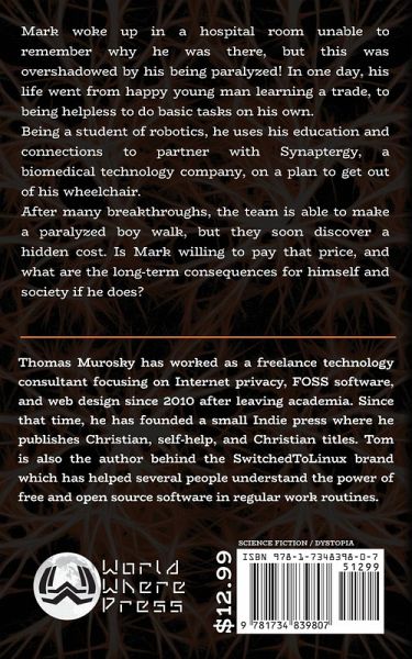 Mark is a student of robotics with a budding career track. Still in high school, he has a fellowship with the local university working with the renown Professor David. But just before the end of the school year, Mark becomes a quadriplegic, closing the doors to his future.But Professor David is contacted by his best friend, Tyler Davis, who was recently promoted to the project lead for a new company called Synaptergy. This company is working on a new brain-to-robotic interface that promises to restore the lives of those who have lost the use of their limbs.Mark rejoins his old lab partners to work on the project. The team makes many breakthroughs, but some things are not as they seem. Soon, the team suspects that the technology has some extra side effects that no one had even considered.Are the effects just random or odd occurrences, or are more nefarious actions going on behind the scenes? The team sees the potential on the project, but needs to decide if the price they may pay is too steep.