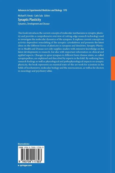 This book introduces the current concepts of molecular mechanisms in synaptic plasticity and provides a comprehensive overview of cutting-edge research technology used to investigate the molecular dynamics of the synapses. It explores current concepts on activity-dependent remodeling of the synaptic cytoskeleton and presents the latest ideas on the different forms of plasticity in synapses and dendrites. Synaptic Plasticity in Health and Disease not only supplies readers with extensive knowledge on the latest developments in research, but also with important information on clinical and applied…mehr
