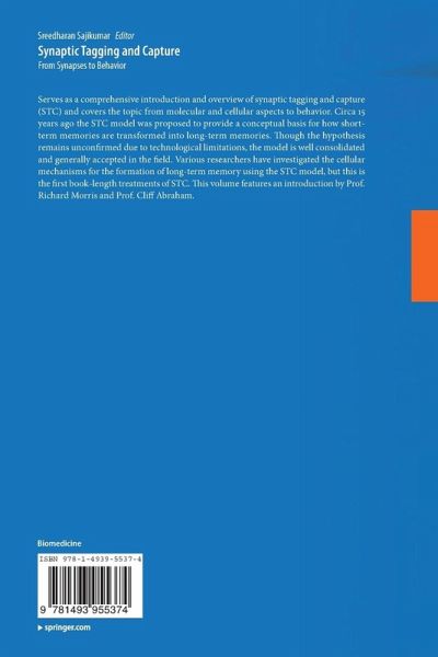 Serves as a comprehensive introduction and overview of synaptic tagging and capture (STC) and covers the topic from molecular and cellular aspects to behavior. Circa 15 years ago the STC model was proposed to provide a conceptual basis for how short-term memories are transformed into long-term memories. Though the hypothesis remains unconfirmed due to technological limitations, the model is well consolidated and generally accepted in the field. Various researchers have investigated the cellular mechanisms for the formation of long-term memory using the STC model, but this is the first…mehr