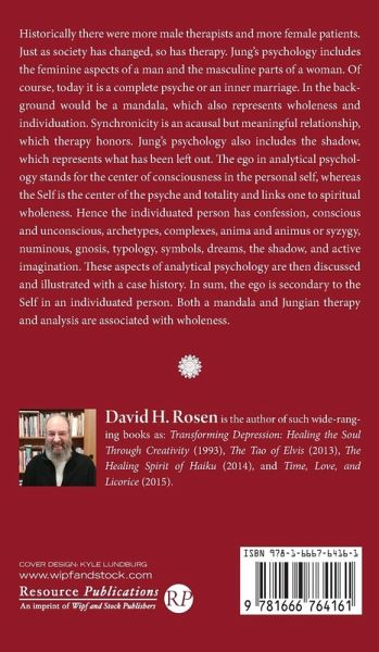 Historically there were more male therapists and more female patients. Just as society has changed, so has therapy. Jung's psychology includes the feminine aspects of a man and the masculine parts of a woman. Of course, today it is a complete psyche or an inner marriage. In the background would be a mandala, which also represents wholeness and individuation. Synchronicity is an acausal but meaningful relationship, which therapy honors. Jung's psychology also includes the shadow, which represents what has been left out. The ego in analytical psychology stands for the center of consciousness in the personal self, whereas the Self is the center of the psyche and totality and links one to spiritual wholeness. Hence the individuated person has confession, conscious and unconscious, archetypes, complexes, anima and animus or syzygy, numinous, gnosis, typology, symbols, dreams, the shadow, and active imagination. These aspects of analytical psychology are then discussed and illustrated with a case history. In sum, the ego is secondary to the Self in an individuated person. Both a mandala and Jungian therapy and analysis are associated with wholeness.