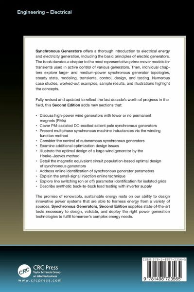 The promise of renewable, sustainable energy rests on our ability to design innovative power systems that are able to harness energy from a variety of sources. Synchronous Generators, Second Edition supplies state-of-the-art tools necessary to design, validate, and deploy the right power generation technologies to fulfill tomorrow's complex energy needs.