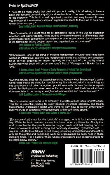 In Synchroservice!, Schonberger, teaming up with Edward M. Knod, Jr., targets leading-edge world-class excellence strategies for the service industry, giving you everything you need to design and execute a synchronized service strategy. Through practical advice gleaned from years of experience, the authors give you the insight to synchronize every aspect of your organization for improved customer service - and enhanced competitive advantage!