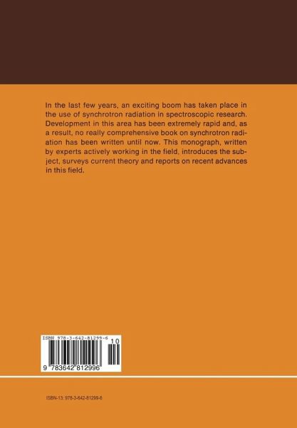 Synchrotron radiation as a spectroscopic research tool has undergone a most inter esting and astonishing historical development and has now come to the stage of an exciting boom. The machines which produce synchrotron radiation were built and de veloped exclusively for other purposes in the past, namely high-energy physics. At the same time, however, they involuntarily became better and better light sources for the spectral range from the visible to the hard x-ray region. Now we are at the point that the first few storage rings have gone into operation as machines dedicated to synchrotron radiation and several more are in the stage of construction and planning. All this was brought about by the successful research performed during the past fifteen years in which several groups allover the world haVe participated at dif ferent accelerator centers mostly symbiotic with high-energy physics. As it happens with a young and rapidly developing field, the number of reviews and monographsis still minute. The objective of this book is to fill an apparent gap and to provide a sound basis for those who are interested in synchrotron radiation and its applica tions.