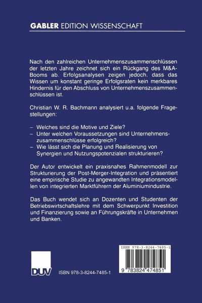 Der Autor entwickelt ein praxisnahes Rahmenmodell zur Strukturierung der Post-Merger-Integration und präsentiert eine empirische Studie zu angewandten Integrationsmodellen von integrierten Marktführern der Aluminiumindustrie.