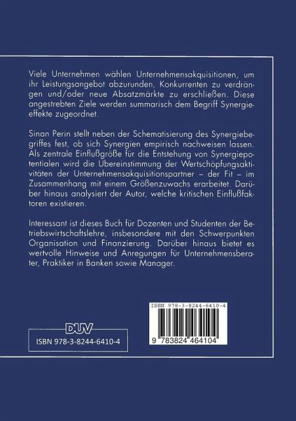 Die Arbeit analysiert theoretisch und empirisch die Entstehung von Synergieeffekten bei Unter nehmensakquisitionen. Die bisher existierenden Untersuchungen beschränken sich auf die Messung eines ,Akquisitionserfolges" und die Abhängigkeit des Erfolges von erklärenden Faktoren. Sie geben aber ein recht uneinheitliches Bild und differenzieren auch nicht nach Synergietypen. Die Arbeit besteht im wesentlichen aus zwei Teilen. Der erste Teil enthält eine theoretische Diskussion der vorstellbaren Synergiepotentiale und Hypothesen über die Einflußfaktoren, von denen das Auftreten der Potentiale abhängt, sowie eine Darstellung und Kritik der bisherigen empirischen Untersuchungen. Der zweite Teil gibt eine eigene empirische Untersuchung wieder. Als Haupteinflußgröße rur die Entstehung von Synergiepotentialen vermutet Perin die Übereinstimmungen zwischen den Akquisitionspartnern, den sog. Fit, der in einen Business-Fit und einen Technologie-Fit aufgespalten wird. Auch der Größenzuwachs durch die Akquisition ist rur das Ausmaß von Synergiepotentialen von Bedeutung. Maßgeblich rur die Ausschöpfung von Synergiepotentialen ist die technische und organisatorische Integration der Akquisitions-Partner. Integration erfordert einen gewissen Integrations-Aufwand. Die letztlich resultierende Synergie der Akquisitionserfolg ist die Differenz zwischen dem Synergieeffekt, also dem ausgeschöpften Teil des Potentials, und dem dazu benötigten Aufwand. Der Verfasser entwickelt auf der Basis der existierenden Literatur Hypothesen darüber, bei welchem Akquisitionstyp ausgedrückt als Ausprägung des Business- und Technologie-Fits welche Arten von Synergiepotentialen möglich sind.