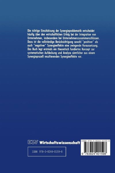 Einführung.- 1. Einleitung.- 2. Problemstellung.- 3. Zielsetzung.- 4. Gang der Untersuchung.- I Grundlegung.- 1. Der Synergiebegriff in der konzeptionellen Synergiediskussion.- 1.1. Vorbemerkung.- 1.2. Die Herkunft des Synergiebegriffs.- 1.3. Begriff s Varianten und Synonyma im Überblick.- 1.4. Ausgewählte Begriffsfassungen.- 1.5. Die Ableitung einer Arbeitsdefinition.- 2. Die theoretischen Grundlagen des Synergiephänomens.- 2.1. Vorüberlegungen zur Identifikation der theoretischen Grundlagen.- 2.2. Die Produktionskostenproblematik.- 2.2.1. Das Konzept der Economies of Scope.- 2.2.2. Die Quellen von Economies of Scope.- 2.2.2.1. Öffentliche Produktionsfaktoren.- 2.2.2.2. Quasiöffentliche Produktionsfaktoren.- 2.2.3. Die Bedeutung des EoS-Konzepts im Hinblick auf das Synergiephänomen.- 2.2.3.1. Aktiva als Quelle kompetitiver Vorteile.- 2.2.3.2. Suboptimale Nutzung von Leistungspotentialen als Grundvoraussetzung von EoS.- 2.2.4. Schlußfolgerungen für die Gestaltung eines analytischen Synergiekonzepts.- 2.3. Die Transferkostenproblematik.- 2.3.1. Der Transfer als logistisches Problem.- 2.3.2. Systeme von Transferprozessen.- 2.3.3. Die Transferkosten.- 2.3.4. Zum Dienstleistungscharakter von Transferprozessen.- 2.3.5. Zur Bedeutung der Transferproblematik für die Auseinandersetzung mit dem Synergiephänomen.- 2.3.6. Schlußfolgerungen für die Gestaltung eines analytischen Synergiekonzepts.- 2.4. Die Transaktionskostenproblematik.- 2.4.1. Vorüberlegung.- 2.4.2. Die Transaktion als Koordinationsprozeß.- 2.4.3. Der transaktionsbedingte Güterverzehr.- 2.4.4. Die Determinanten des transaktionsbedingten Güter Verzehrs.- 2.4.4.1. Faktorspezifizität.- 2.4.4.2. Unsicherheit.- 2.4.4.3. Häufigkeit.- 2.4.5. Kostenbegriff und Bewertungsproblematik.- 2.4.6. Transaktionskosten und Synergiephänomen: zur Bedeutung des Ansatzes.- 2.4.7. Schlußfolgerungen für die Gestaltung eines analytischen Synergiekonzepts.- 2.5. Der Anforderungskatalog für ein Konzept zur Erfassung der Synergieproblematik.- II Der Stand der konzeptionellen Erfassung der Synergieproblematik in der Synergiediskussion.- 1. Aufgabenstellung.- 2. Der Stand der Entwicklung theoriegeleiteter Konzepte zur Erfassung der Synergieproblematik.- 2.1. Der Stand der expliziten Rezeption der theoretischen Grundlagen der Synergieproblematik.- 2.1.1. Zur Vernachlassigung von Transfer- und Transaktionsproblematik.- 2.1.2. Die Rezeption der Produktionskostenproblematik.- 2.1.2.1. Stand der Entwicklung.- 2.1.2.2. Zum Umfang der Rezeption der Produktionskostenproblematik im Rahmen des Ansatzes von Ropella.- 2.2. Der Beitrag Ropellas zur konzeptionellen Erfassung der Synergieproblematik.- 2.2.1. Die Abgrenzung der Produktionsfaktoren als Verursachungsfaktoren von Synergie .- 2.2.1.1. Die Ausgrenzung externer Produktionsfaktoren.- 2.2.1.2. Die Ausgrenzung des dispositiven Faktors.- 2.2.1.3. Geld als synergierelevanter Produktionsfaktor.- 2.2.2. Die Kriterien zur Systematisierung der synergierelevanten Produktionsfaktoren.- 2.2.3. Die Systematik der Potentialfaktoren: Zusammenfassung und Fazit.- 2.3. Zwischenergebnis zum Stand der konzeptionellen Erfassung der Synergieproblematik in der Synergiediskussion.- 3. Der Stand der Entwicklung heuristisch gepragter Konzepte zur Erfassung der Synergieproblematik.- 3.1. Voriiberlegung.- 3.2. Synergie und Wachstumsstrategie: die Erfassung der Synergieproblematik bei Ansoff.- 3.2.1. Apperzeption und Bedeutung des Synergiephanomens im Beitrag von Ansoff.- 3.2.1.1. Synergie als Kriterium fur die Beurteilung von Absatzmarktentscheidungen.- 3.2.1.2. Zur normativen Bedeutung der GlobalgroBe Synergie .- 3.2.2. Ansatzpunkte zur systematischen Erfassung der Synergieproblematik.- 3.2.2.1. Der methodologische Rahmen fur die Erfassung der Synergieproblematik.- 3.2.2.2. Ein erster Ansatz zur Erfassung der Synergieproblematik.- 3.2.2.3. Die Aufdeckung von gemeinsam nutzbaren Ressourcen.- 3.2.2.4. Die Analyse der strategischen Relevanz von gemeinsam nutzbar