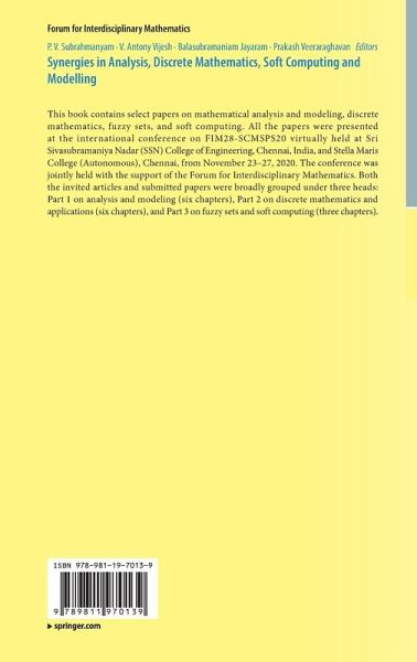 This book contains select papers on mathematical analysis and modeling, discrete mathematics, fuzzy sets, and soft computing. All the papers were presented at the international conference on FIM28-SCMSPS20 virtually held at Sri Sivasubramaniya Nadar (SSN) College of Engineering, Chennai, India, and Stella Maris College (Autonomous), Chennai, from November 23-27, 2020. The conference was jointly held with the support of the Forum for Interdisciplinary Mathematics. Both the invited articles and submitted papers were broadly grouped under three heads: Part 1 on analysis and modeling (six…mehr