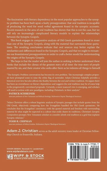 The fascination with literary dependency in the most popular approaches to the synoptic problem has been built upon a faulty presupposition: that oral tradition is incapable of producing the word for word verbal agreement found in the synoptic accounts. Recent research in the area of oral tradition has shown that this is not the case, but we still rely on increasingly complicated literary models to explain the relationships between the Synoptic Gospels. This book engages in comparative analysis of Old Greek quotations found in more than one of the Synoptic Gospels, along with the material that surrounds these quotations. The resulting conclusions indicate that oral sources may better explain the similarities and differences found in the Synoptic Gospels, and that we ought to reexamine our foundational presuppositions in order to craft a better model for understanding the origins of the Synoptic Gospels. The hope is that the reader will join the author in seeking to better understand these books that include the climax of the greatest story of all time: the true story of people marred by sin, and their creator who seeks after them as he redeems all things to himself.
