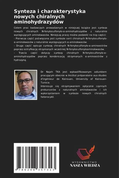 Celem prac badawczych prowadzonych w niniejszej ksi¿¿ce jest synteza nowych chiralnych N-fenylosulfonylo-¿-aminohydrazydów z naturalnie wyst¿puj¿cych aminokwasów. Niniejsz¿ prac¿ möna podzieli¿ na trzy cz¿¿ci:- Pierwsza cz¿¿¿ pöwi¿cona jest syntezie serii chiralnych N-fenylosulfonylo-¿-aminokwasów z naturalnie wyst¿puj¿cych ¿-aminokwasów.- Druga cz¿¿¿ opisuje syntez¿ chiralnych N-fenylosulfonylo-¿-aminoestrów poprzez estryfikacj¿ otrzymanych wcze¿niej N-fenylosulfonyloaminokwasów.- Trzecia cz¿¿¿ dotyczy syntezy chiralnych N-fenylosulfonylo-¿-aminohydrazydów poprzez kondensacj¿ otrzymanych ¿-aminoestrów z hydrazyn¿.