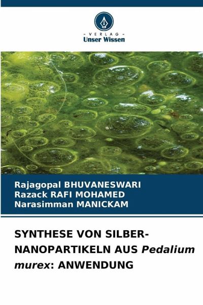 Biosynthetisierte Silbernanopartikel (AgNPs) gewinnen aufgrund ihrer biologisch aktiven Sekundärmetaboliten an Aufmerksamkeit. Sie werden für die grüne Synthese verwendet. Die Analyse soll eine einfache, umweltfreundliche, zuverlässige und kostengünstige Synthese von AgNPs unter Verwendung von Pedalium murex aufzeigen. Der Strauch wurde im südlichen Teil der Deccan-Region in Indien gefunden. Die Teile wurden in verschiedenen Regionen analysiert und werden zur Behandlung verschiedener Beschwerden wie Husten und Erkältungen als Antiseptikum verwendet. Nanoskalige Metalle (NS) werden in vielen Bereichen eingesetzt. Gegenwärtig werden NS-Metalle hauptsächlich durch chemische Verfahren synthetisiert, die unerwünschte Auswirkungen wie Umweltverschmutzung, hohen Energieverbrauch und mögliche Gesundheitsprobleme haben. Bei der grünen Synthese werden Pflanzenextrakte anstelle von industriellen chemischen Mitteln zur Reduktion von Metallionen verwendet. Die grüne Synthese ist vorteilhafterals die herkömmliche chemische Synthese. In dieser Übersicht werden die aktuellen Entwicklungen der grünen Synthese von Gold-, Silber-, Palladium-, Kupfer- und Eisen-NP sowie deren Oxid (Fe-NP) bewertet. Außerdem wird das antibakterielle Potenzial verschiedener Extrakte bewertet, über die in diesem Buch berichtet wurde.