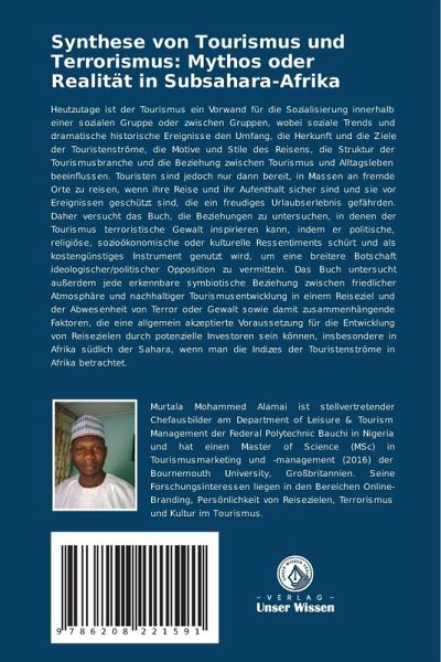 Heutzutage ist der Tourismus ein Vorwand für die Sozialisierung innerhalb einer sozialen Gruppe oder zwischen Gruppen, wobei soziale Trends und dramatische historische Ereignisse den Umfang, die Herkunft und die Ziele der Touristenströme, die Motive und Stile des Reisens, die Struktur der Tourismusbranche und die Beziehung zwischen Tourismus und Alltagsleben beeinflussen. Touristen sind jedoch nur dann bereit, in Massen an fremde Orte zu reisen, wenn ihre Reise und ihr Aufenthalt sicher sind und sie vor Ereignissen geschützt sind, die ein freudiges Urlaubserlebnis gefährden. Daher versucht das Buch, die Beziehungen zu untersuchen, in denen der Tourismus terroristische Gewalt inspirieren kann, indem er politische, religiöse, sozioökonomische oder kulturelle Ressentiments schürt und als kostengünstiges Instrument genutzt wird, um eine breitere Botschaft ideologischer/politischer Opposition zu vermitteln. Das Buch untersucht außerdem jede erkennbare symbiotische Beziehung zwischen friedlicher Atmosphäre und nachhaltiger Tourismusentwicklung in einem Reiseziel und der Abwesenheit von Terror oder Gewalt sowie damit zusammenhängende Faktoren, die eine allgemein akzeptierte Voraussetzung für die Entwicklung von Reisezielen durch potenzielle Investoren sein können, insbesondere in Afrika südlich der Sahara, wenn man die Indizes der Touristenströme in Afrika betrachtet.
