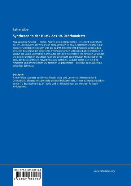 Musikalisches Material - Themen, Motive, deren Komponenten - erscheint in der Musik des 19. Jahrhunderts im Verlauf von Kompositionen in neuen Zusammensetzungen. Für deren verschiedene Strukturen wird der Begriff "Synthese" mit differenzierenden adjektivischen Bestimmungen eingeführt. Synthesen können unterschiedliche Funktionen im Verlauf der Stücke übernehmen. Der Autor geht den motivischen wie formalen Strukturen sowie deren Funktionen analytisch nach und untersucht den motivisch-thematischen Prozess, der diese Synthesen hervorbringt und bestimmt. Dadurch ergibt sich ein differenziertes Bild der materialen wie formalen Gegebenheiten - durchaus auch außerhalb geläufiger Schemata.