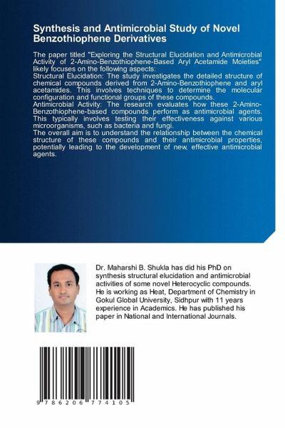 The paper titled "Exploring the Structural Elucidation and Antimicrobial Activity of 2-Amino-Benzothiophene-Based Aryl Acetamide Moieties" likely focuses on the following aspects:Structural Elucidation: The study investigates the detailed structure of chemical compounds derived from 2-Amino-Benzothiophene and aryl acetamides. This involves techniques to determine the molecular configuration and functional groups of these compounds.Antimicrobial Activity: The research evaluates how these 2-Amino-Benzothiophene-based compounds perform as antimicrobial agents. This typically involves testing their effectiveness against various microorganisms, such as bacteria and fungi.The overall aim is to understand the relationship between the chemical structure of these compounds and their antimicrobial properties, potentially leading to the development of new, effective antimicrobial agents.