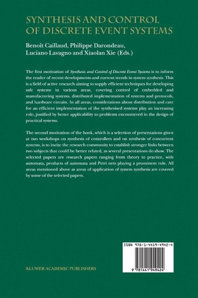 This book aims at providing a view of the current trends in the development of research on Synthesis and Control of Discrete Event Systems. Papers col lected in this volume are based on a selection of talks given in June and July 2001 at two independent meetings: the Workshop on Synthesis of Concurrent Systems, held in Newcastle upon Tyne as a satellite event of ICATPN/ICACSD and organized by Ph. Darondeau and L. Lavagno, and the Symposium on the Supervisory Control of Discrete Event Systems (SCODES), held in Paris as a satellite event of CAV and organized by B. Caillaud and X. Xie. Synthesis is a generic term that covers all procedures aiming to construct from specifications given as input objects matching these specifications. The ories and applications of synthesis have been studied and developped for long in connection with logics, programming, automata, discrete event systems, and hardware circuits. Logics and programming are outside the scope of this book, whose focus is onDiscrete Event Systems and Supervisory Control. The stress today in this field is on a better applicability of theories and algorithms to prac tical systems design. Coping with decentralization or distribution and caring for an efficient realization of the synthesized systems or controllers are of the utmost importance in areas so diverse as the supervision of embedded or man ufacturing systems, or the implementation of protocols in software or in hard ware.