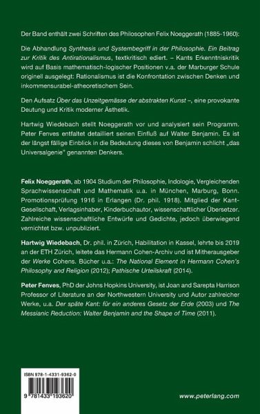 Felix Noeggerath ist heute weitgehend vergessen - trotz seiner intellektuellen Brillanz und vielfältigen Kontakte in die seinerzeitige philosophische Welt. Er war beachteter Höher in der Marburger Schule, bei Hermann Cohen, Paul Natorp und Nicolai Hartmann und hatte persönlichen Kontakt zu Walter Benjamin und Helmuth Plessner. Es ist das große Verdienst des vorliegenden Bandes, Noeggeraths bisher ungedruckte Dissertation Synthesis und Systembegriff in der Philosophie der Öffentlichkeit zugänglich zu machen. Die Untersuchung fasst einen zentralen Begriff Immanuel Kants neu und ist streckenweise eine kritische Rekonstruktion der Philosophie Cohens. Und noch mehr: Sie ist der Versuch, eine eigenständige Philosophie zu entwickeln und demonstriert eine eindrucksvolle Produktivität. Der Band entspricht höchstem editorischem Standard und arbeitet weiterer philosophiehistorischer Forschung im besten Sinne vor. Geert Edel Autor von Von der Vernunftkritik zur Erkenntnislogik: Die Entwicklung der theoretischen Philosophie Hermann Cohens