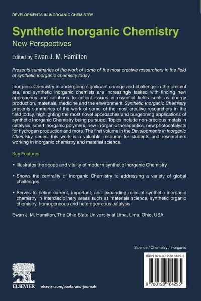 Synthetic Inorganic Chemistry: New Perspectives presents summaries of the work of some of the most creative researchers in the field. The book highlights the most novel approaches and burgeoning applications of synthetic inorganic chemistry in development. Topics include non-precious metals in catalysis, smart inorganic polymers, new inorganic therapeutics, new photocatalysts for hydrogen production, and more. As the first volume in the Developments in Inorganic Chemistry series, this work is a valuable resource for students and researchers working in inorganic chemistry and material science.
