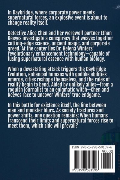 In a world where corporate greed and cutting-edge science intertwine, the line between man and monster blurs. Supernatural beings and human megacorporations battle for power, but a new threat emerges that could reshape reality itself. Welcome to Daybridge, where an explosive event called the Daybridge Evolution will change everything. Detective Alice Chen and her werewolf partner Ethan Reeves stand at the forefront of this transformative conflict. As they navigate a complex web of corporate espionage, underground supernatural factions, and reality-altering quantum mechanics, they uncover a…mehr