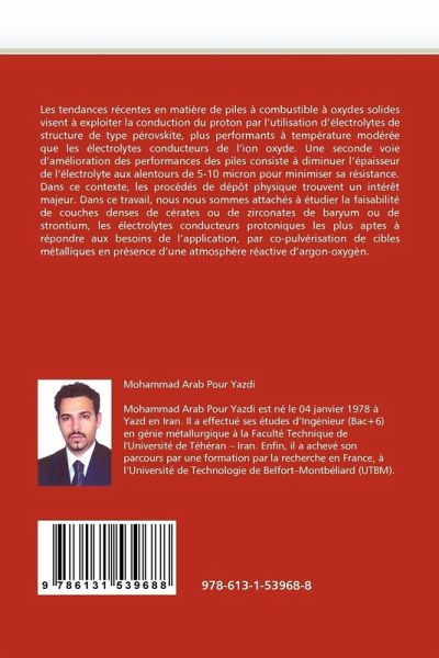 Les tendances récentes en matière de piles à combustible à oxydes solides visent à exploiter la conduction du proton par l utilisation d électrolytes de structure de type pérovskite, plus performants à température modérée que les électrolytes conducteurs de l ion oxyde. Une seconde voie d amélioration des performances des piles consiste à diminuer l épaisseur de l électrolyte aux alentours de 5-10 micron pour minimiser sa résistance. Dans ce contexte, les procédés de dépôt physique trouvent un intérêt majeur. Dans ce travail, nous nous sommes attachés à étudier la faisabilité de couches denses de cérates ou de zirconates de baryum ou de strontium, les électrolytes conducteurs protoniques les plus aptes à répondre aux besoins de l application, par co-pulvérisation de cibles métalliques en présence d une atmosphère réactive d argon-oxygèn.