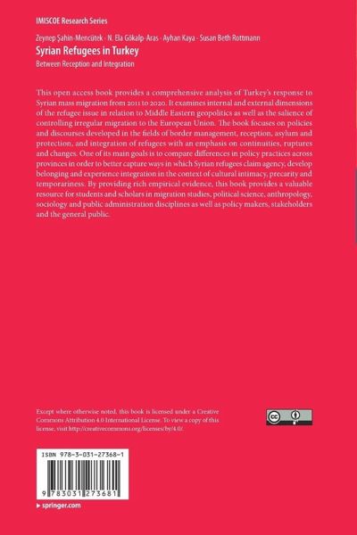 This open access book provides a comprehensive analysis of Turkey's response to Syrian mass migration from 2011 to 2020. It examines internal and external dimensions of the refugee issue in relation to Middle Eastern geopolitics as well as the salience of controlling irregular migration to the European Union. The book focuses on policies and discourses developed in the fields of border management, reception, asylum and protection, and integration of refugees with an emphasis on continuities, ruptures and changes. One of its main goals is to compare differences in policy practices across provinces in order to better capture ways in which Syrian refugees claim agency, develop belonging and experience integration in the context of cultural intimacy, precarity and temporariness. By providing rich empirical evidence, this book provides a valuable resource for students and scholars in migration studies, political science, anthropology, sociology and public administration disciplines aswellas policy makers, stakeholders and the general public.