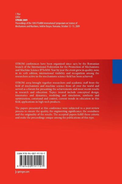 SYROM 2009 brought together researchers and academic staff from the field of mechanisms and machine science from all over the world and served as a forum for presenting the achievements and most recent results in research and education. Topics treated include conceptual design, kinematics and dynamics, modeling and simulation, synthesis and optimization, command and control, current trends in education in this field, applications in high-tech products.